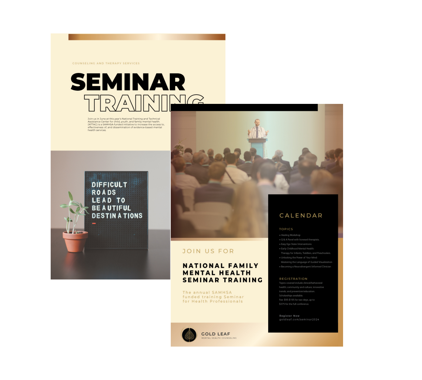For this new mental health counseling company, I focused on developing a logo that communicates a sense of calm, trust, and connection to nature. The logo design drew inspiration from the natural form symbolizing growth and renewal ultimately leading to a clean, modern mark that feels both grounded and uplifting. From there, I extended the visual identity into print materials, including business cards, flyers, and informational brochures.